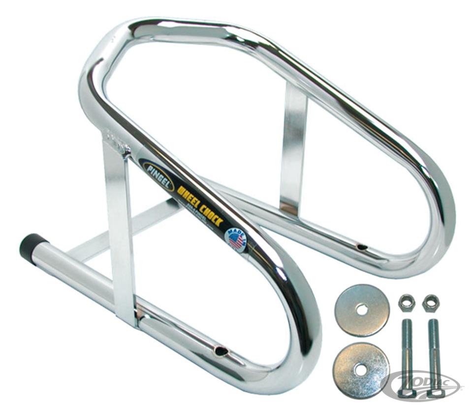 The Pingel wheel chocks are also available with drilled mounting holes. They mount permanently on the floor of your truck or trailer. The wheel chock is made from heavy duty thick wall steel construction and includes mounting hardware for easy installation. Available in 2 dimensions. These wheel chocks are a trademark of Pingel Enterprises Inc. and are made in the USA.