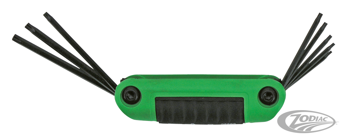 It is not without reason they say, "Good tools are half the job". We offer a complete line of USA made High Quality Allen head and Torx head keys, screw drivers and T-handle drivers made by Eklind, the world leader in manufacturing allen keys and similar. Each kit is manufactured of 8650 alloy steel for years of trouble free use. These professional quality tools are now available at very competitive prices. Since the introduction of the V-Rod, metric sizes have become a must in every Harley workshop too, that's why we now offer these kits in both metric and standard. The best for the custom builder and a must for the professional workshop. Ball end driver offers you an easy fastening in an up to 35 degree angle. Holder kits also available with extra short stubby end.