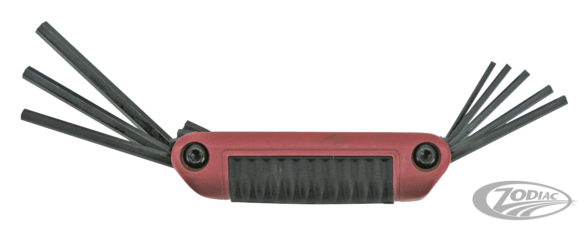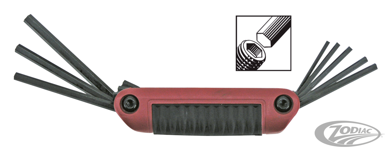 It is not without reason they say, "Good tools are half the job". We offer a complete line of USA made High Quality Allen head and Torx head keys, screw drivers and T-handle drivers made by Eklind, the world leader in manufacturing allen keys and similar. Each kit is manufactured of 8650 alloy steel for years of trouble free use. These professional quality tools are now available at very competitive prices. Since the introduction of the V-Rod, metric sizes have become a must in every Harley workshop too, that's why we now offer these kits in both metric and standard. The best for the custom builder and a must for the professional workshop. Ball end driver offers you an easy fastening in an up to 35 degree angle. Holder kits also available with extra short stubby end.