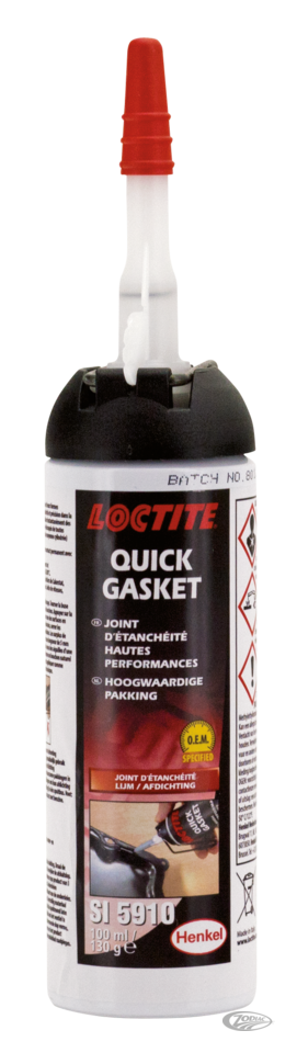 Loctite Quick Gasket cures to a permanently flexible, reliable and long lasting gasket. The unique even-flow nozzle is very easy to use and allows dispensing with extra accuracy. The product can also replace cut gaskets. • Continuous service temperature up to 200°C (390°F), intermittent up to 260°C (500°F). • Withstands all shop fluids like oil, coolant and ATF • No odor • Instant sealing performance: up to 0.25mm at 0.35 bar • Not for use on head gaskets or on parts in continuous contact with fuel
