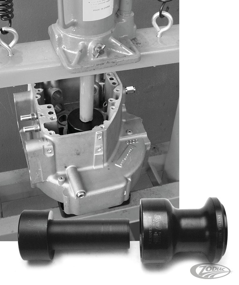 This quality tool is designed and made by Jims to remove and replace the crankcase bearings on Twin Cam engines. Precision made and piloted using Delrin, a non-marring material, to press bearing in and out straight with no damage to the case.