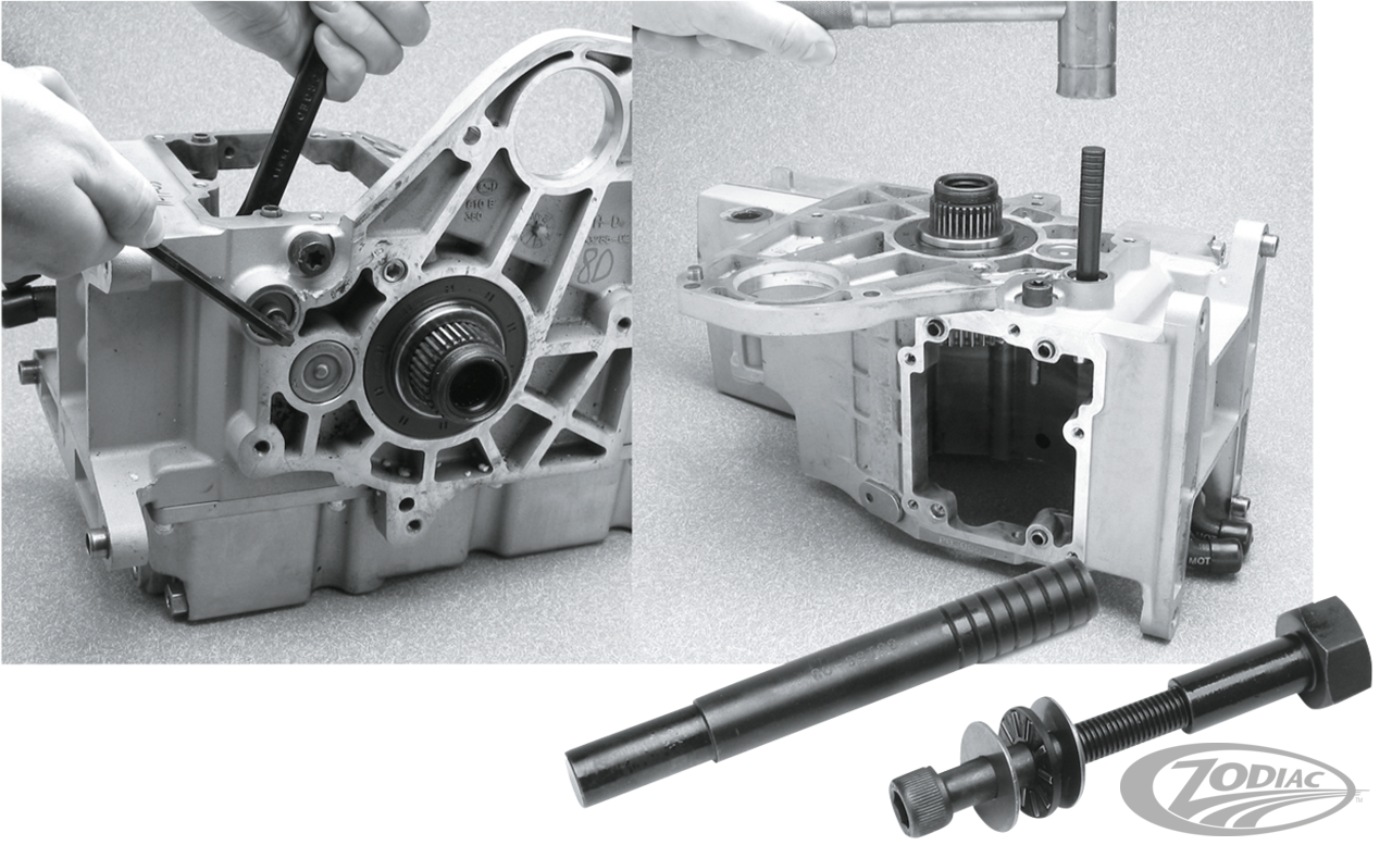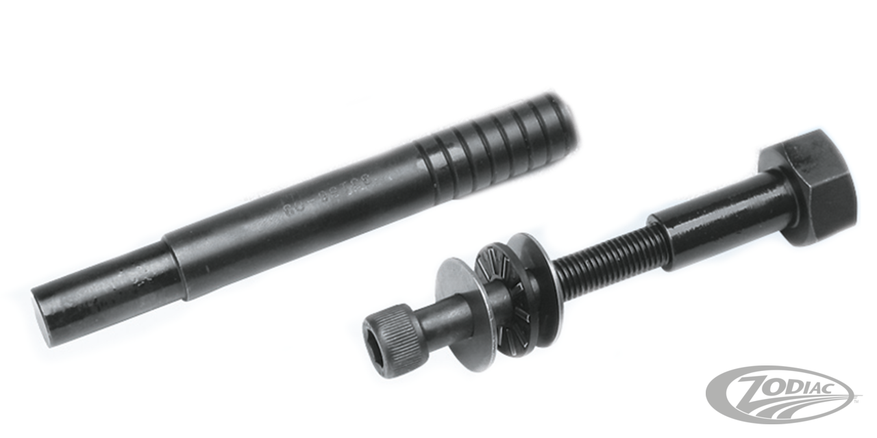 Use to remove and install the shifter shaft sleeve in all 5 speed Big Twin transmissions and most aftermarket 6 Speed transmissions. This tool may be used to remove or install replacement or upgrade shifter shaft sleeve, assembly and drum. Works for Big Twin 1980 thru 1999 as well as Twin Cam 1999 thru 2006, except 2006 Dyna models.