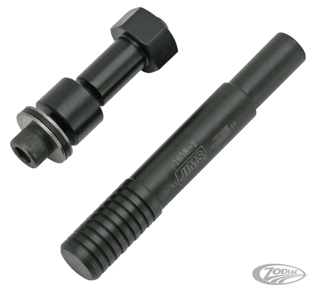 This tool from Jims allows you to remove and install the shifter shaft sleeve without removing the transmission case from the chassis. It installs the sleeve to the correct depth in the case without error or damage. Works on all Harley Cruise-Drive 6-speed transmissions on 2006 thru 2017 Dyna and 2007 to present Softail and Touring models.