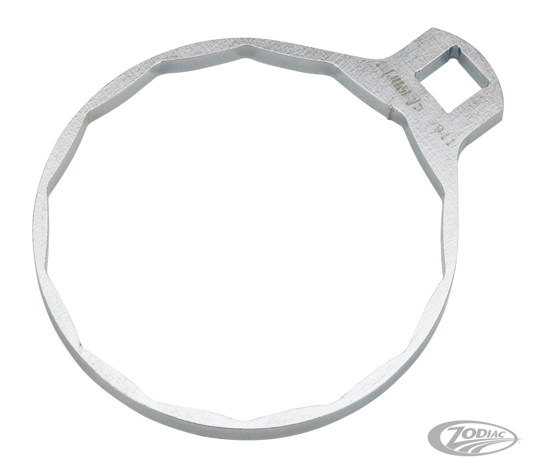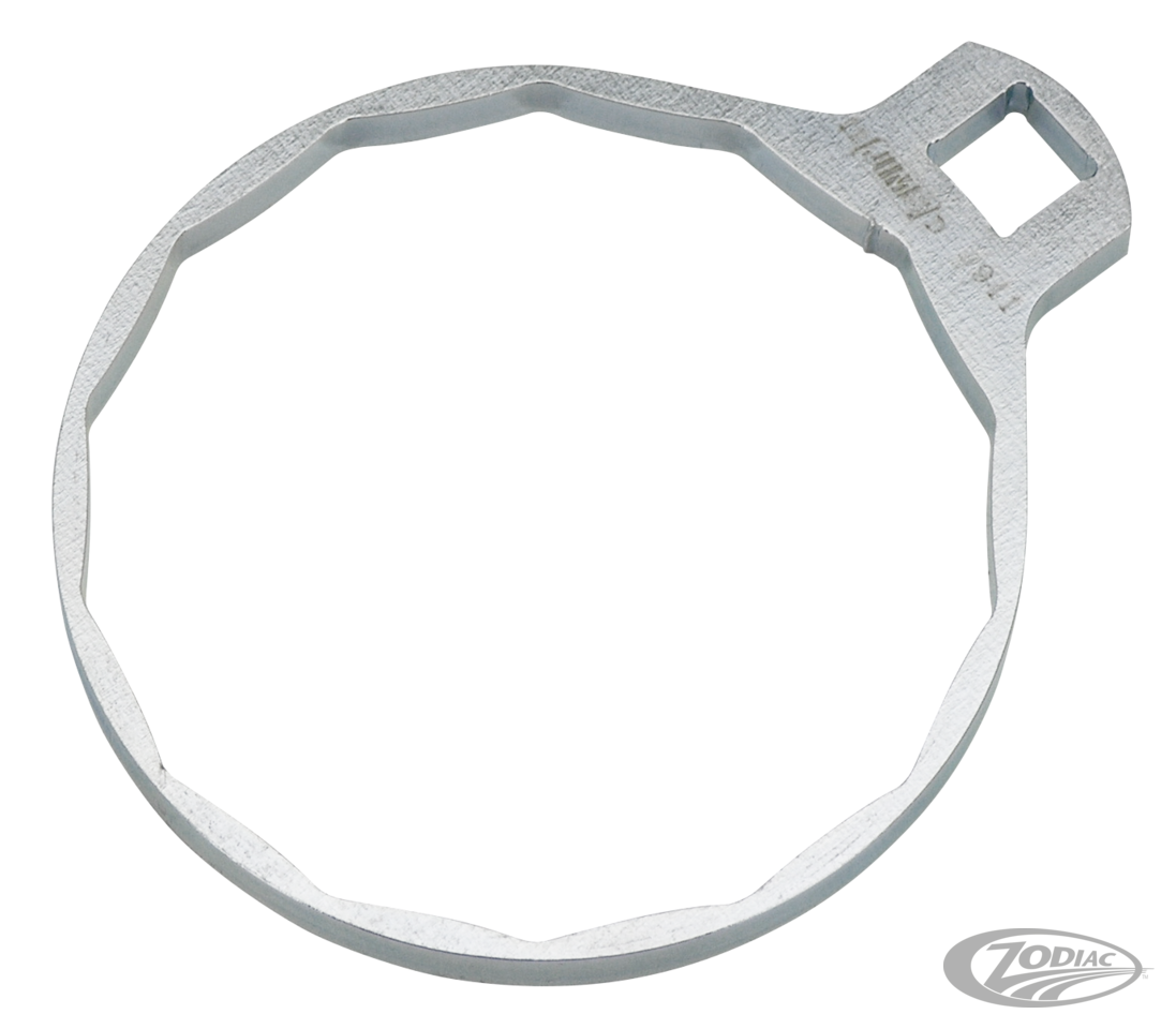The new Slim-JIMS Oil Filter Wrench is the slimmest on the market. Its exclusive design makes it much easier to navigate near the oil cooler and the crank position sensor, and allows for more room to work around the exhaust pipes, frame, hoses and brackets. It incorporates a 3/8" square drive and guarantees a good grip on spin-on oil filters with a 14-flute end. The Slim-JIMS Oil Filter Wrench is manufactured in the USA. Not suitable for S&S oil filters.