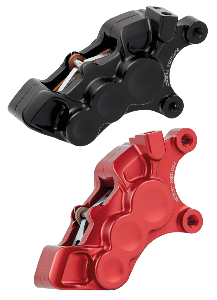 These 6-piston differential bore brake calipers are CNC machined from billet aluminum. They feature caliper bodies that are engineered for form and function. The 3D sculptured design with cooling fins machined into the inner caliper halves help facilitate cooling incurred while braking. Calipers are sold each and include DP brake pads, bleeder screw, banjo bolt, sealing washers, mounting hardware and shim kit. Compatible with ABS & non-ABS applications.