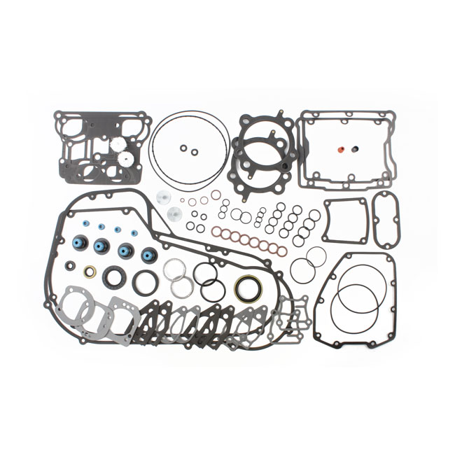 This EST (Extreme-Sealing-Technology) gasket set is complete with all gaskets; seals and o-rings that are used on this model; including primary gaskets. It's the easy way to do a complete overhaul and have all gaskets that are necessary in one package to reassemble the engine. This EST gasket set contains MLS (Multi-Layer-Steel) .040" thick head gaskets which eliminates the use of dowel pin o-rings. Base gaskets are SLS (Single-Layer-Steel) .010" thick. They have .005" of high temperature Viton rubber on both sides and are the strongest on the market. Rocker cover gaskets are also .020" thick SLS. They will not weep; extrude; tear or become brittle over time. Exhaust gaskets will not hinder exhaust gas flow and will not fray into the exhaust port. Valve seals utilize Viton rubber and outer springs for a perfect seal. With 99-10 style breather gaskets