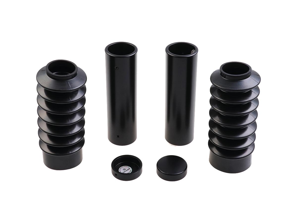6-Piece Fork Covers with lower Fork Rubbers Long Version, with Cult-Werk Logo, relocated OEM Front Turn Signal Position Gloss Black Powder Coated