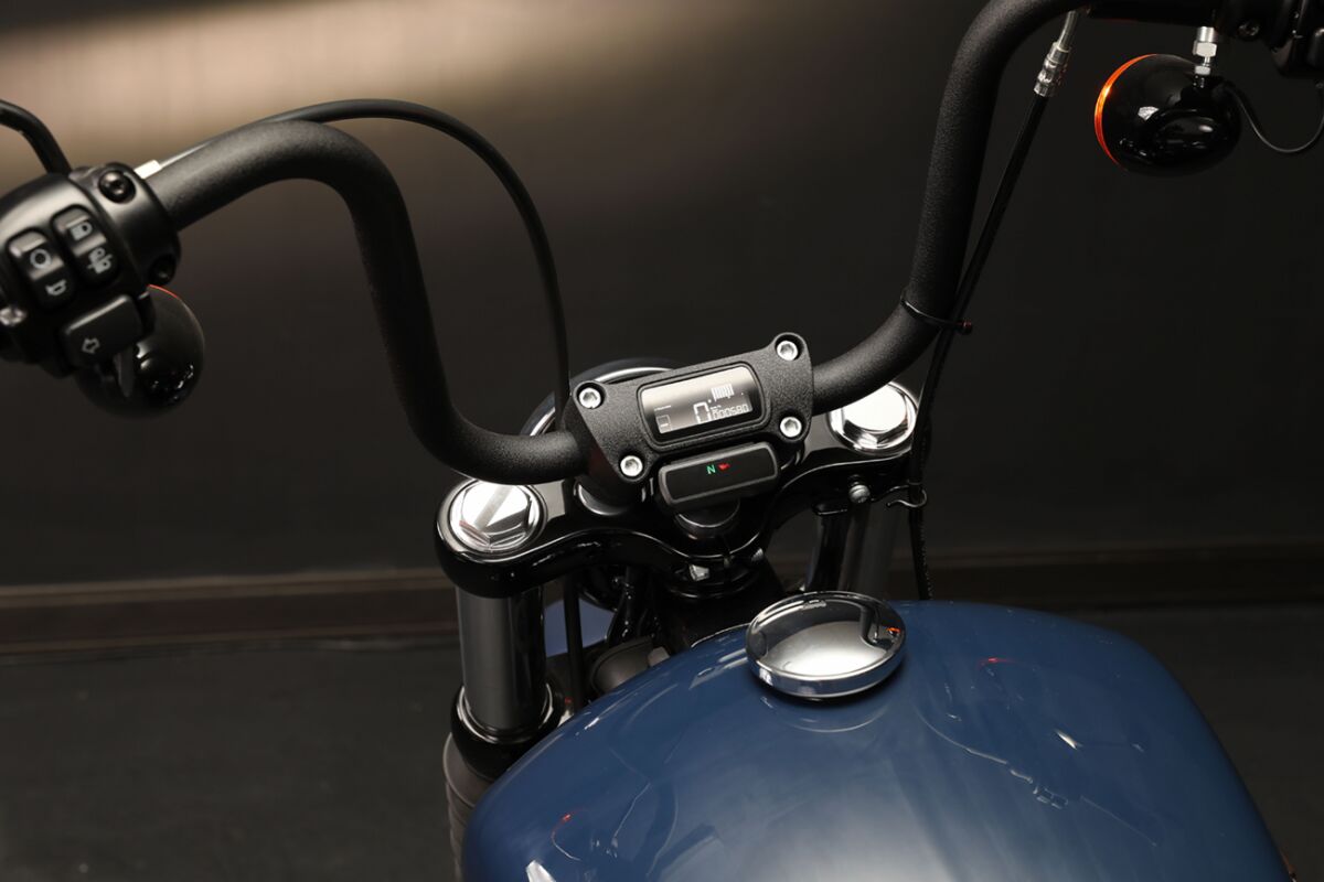 - Designed to mount below cutout top handlebar clamp for a sleek look (handlebar riser kit with gauge cutout or gauge relocation kit may be required depending on application).