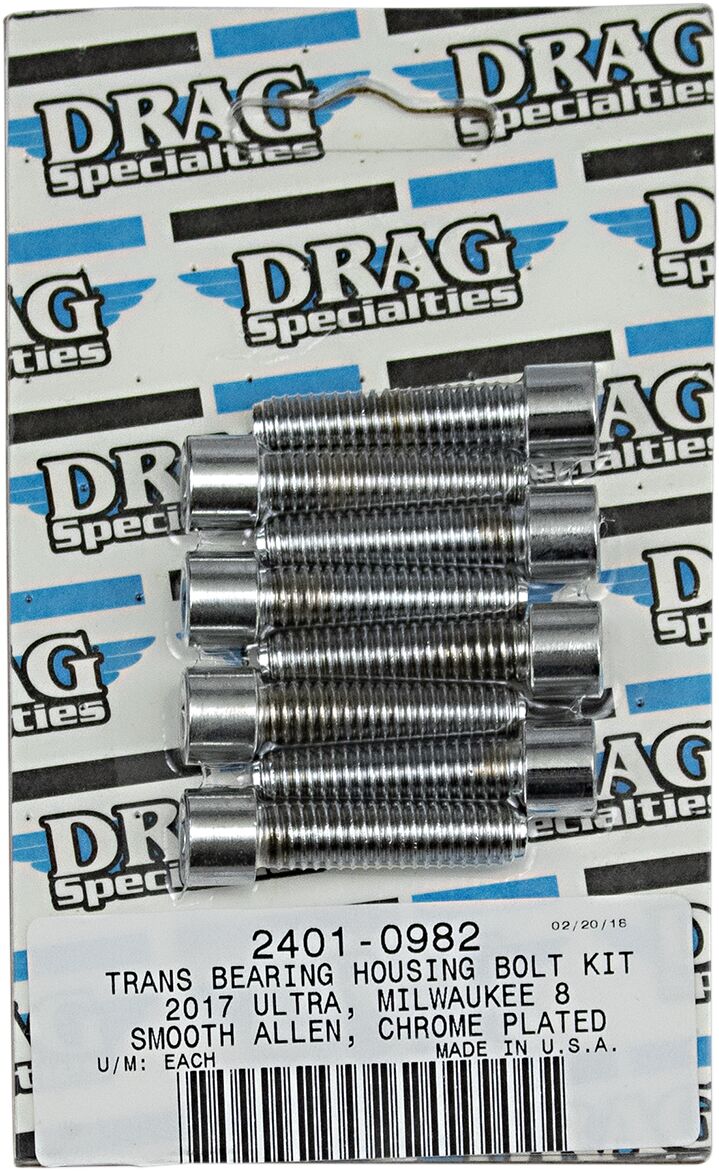 24010982 - DRAG SPECIALTIES BOLT KIT M8 TRANMISSION BEARING HOUSING SMOOTH SOCKET HEAD CHROME