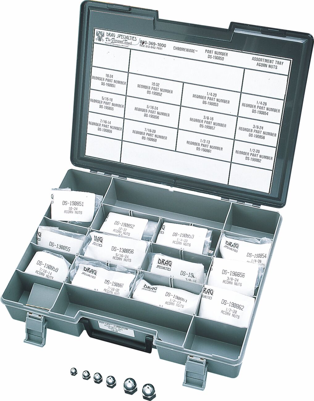 Acorn Nut Assortment Kit- Each size contained in kit may be reordered in packs of 10, except 1/2 sizes which are 5-packs.