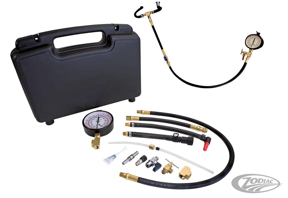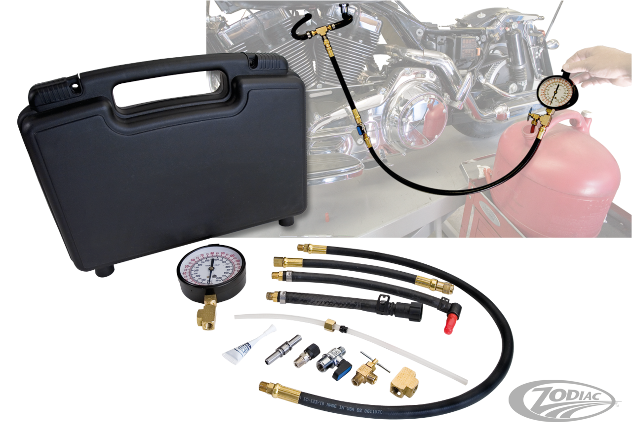 Diese Anzeige ist ein absolutes Muss da alle neuen Big Twin Modelle mit Einspritzanlage betrieben werden. Diese Druckanzeige ist leicht in die Benzin Zufuhrleitung einzuschleifen. Jims liefert alle notwendigen Anschlüsse und Fittings um einen Drucktest sicher und schnell durchführen zu können. Der Drucktest ist mit diesem Kit genauso schnell durchgeführt wie ein Kerzenwechsel.