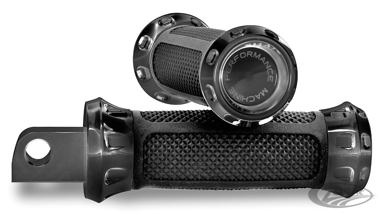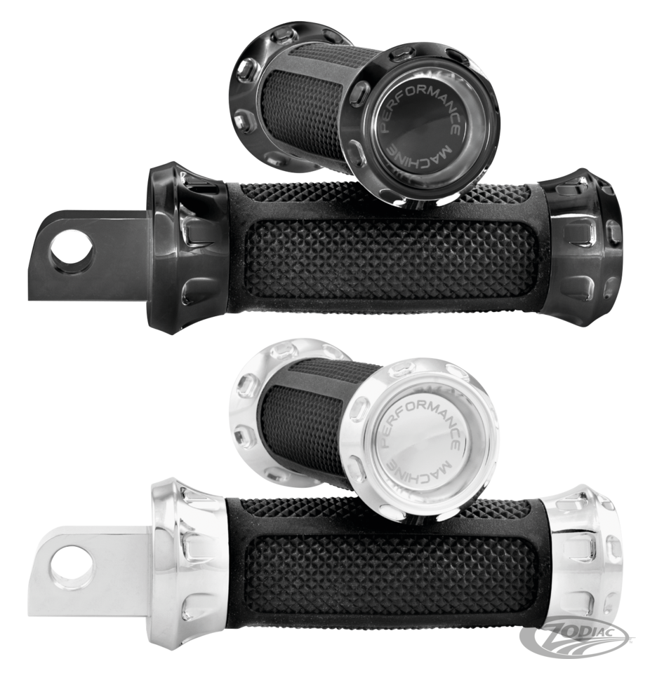 PM's Overdrive Rasten besitzen eingefräste Akzente. Fussrasten werden paarweise angeboten. Die Schaltrasten können bei einigen Modellen auch als Bremspedalraste verwendet werden und werden einzeln angeboten.