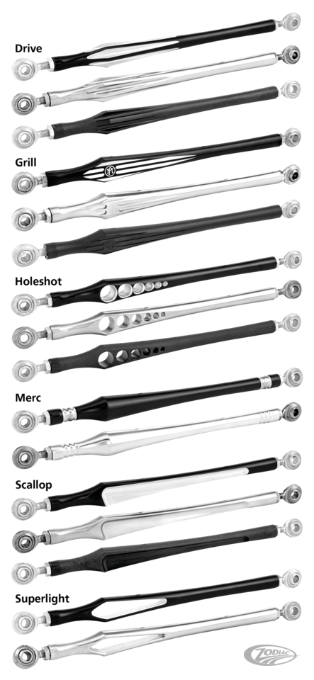 PM Schaltstangen werden in den USA aus Billet-Alu CNC-gefertigt und eignen sich für alle Tourer ab 1984, FXDWG Dyna Wide Glide 1993-2002 sowie alle Softail 1986-2017 (ausser FLSTS 1997-1999) und werden komplett mit verchromten Schaltstangenenden und Kleinteilen geliefert.