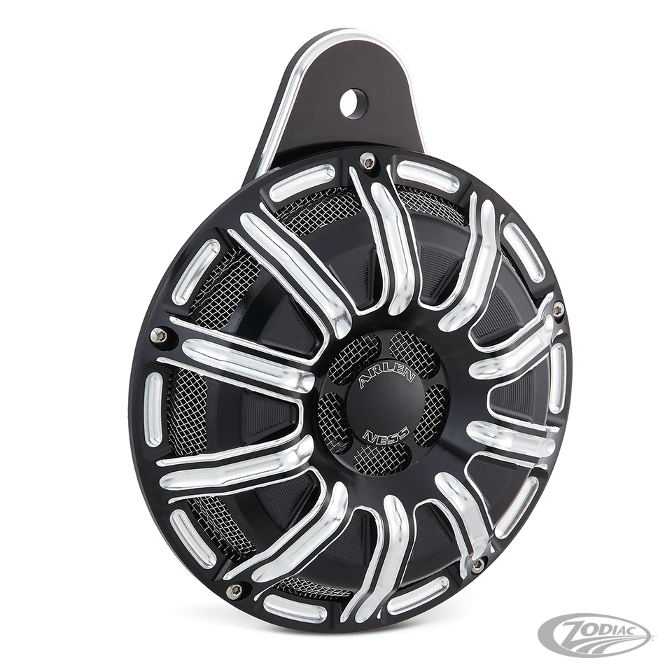 Komplette Hupenkits, hergestellt aus geschmiedetem Billet-Alu und VA-Drahtgewebe. Tolle Optik und besonders kompakt in den Abmessungen für optimale Beinfreiheit. Erhältlich in 4 verschiedenen Ausführungen mit verchromtem oder schwarz-eloxiertem Finish, Stahlhalter für Sportster und die Universalversionen, welche sich hervorragend auch für Custombikes, Softails oder Dynas eignen. Diese kräftigen Hupen sind leicht zu installieren und bringen 110dB(A) damit sie auf keinen Fall überhört werden können und passen optisch auch prima zu den Arlen Ness Inverted Luftfilter Kits.