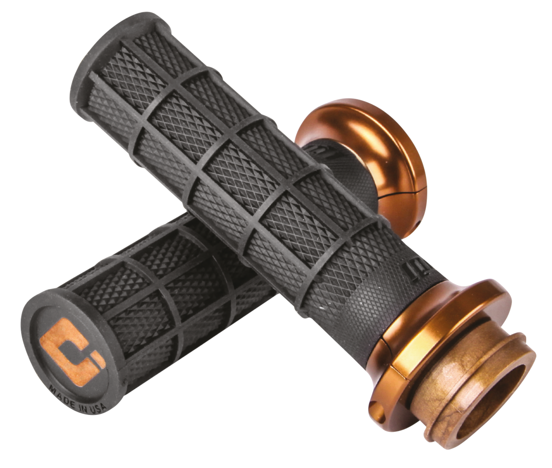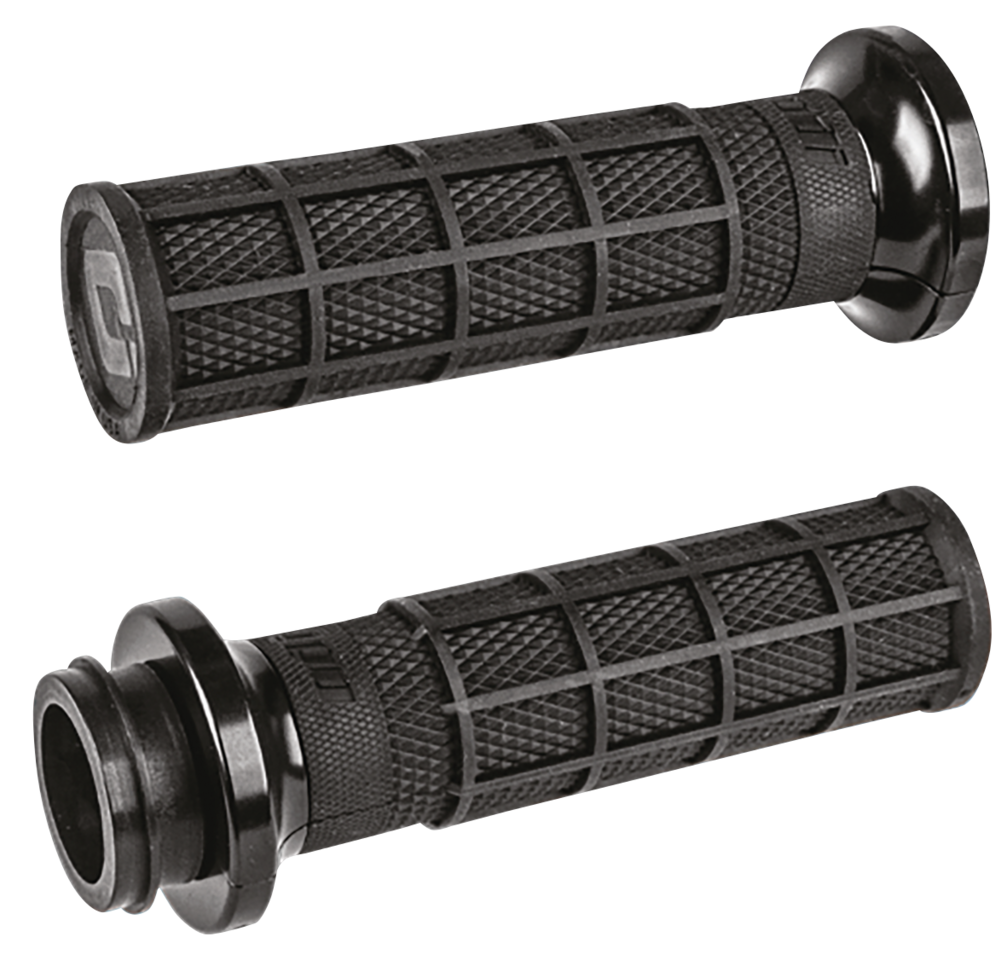 Dieses vom Motocross inspirierte Vollwaffel-Design wurde entwickelt, um durch Reduzierung der Vibrationen einen verbesserten Komfort zu bieten und gleichzeitig einen Griff mit außergewöhnlicher Traktion und Kontrolle unter schwierigen Fahrbedingungen zu bieten. Die ODI-Original-Lock-On-Technologie wurde verwendet, um das sicherste Montagesystem zu bieten und gleichzeitig eine einfache Installation und Demontage zu ermöglichen. Die kupplungsseitige Klemme aus Billet-Aluminium sorgt für 100% rutschfeste Sicherheit. Hergestellt mit einer eingegossenen Gasgriffhülse, welche entsprechend dem Modell spezifisch ist.