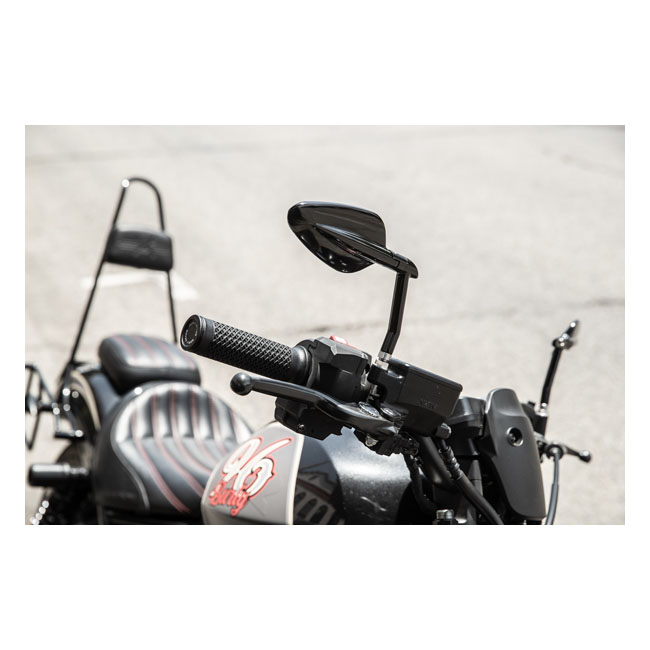 Inspired by traditional 50’s style Hot Rods. The Burly Hot Rod Mirrors feature smart ambidextrous stems to suit your taste and riding style. Fully adjustable and vibration tested so you never lose sight. - Direct Bolt-on to Honda Hand Controls - Ambidextrous stems (mount as right or left) - CNC Machined from billet aluminum - Black Anodized Finish