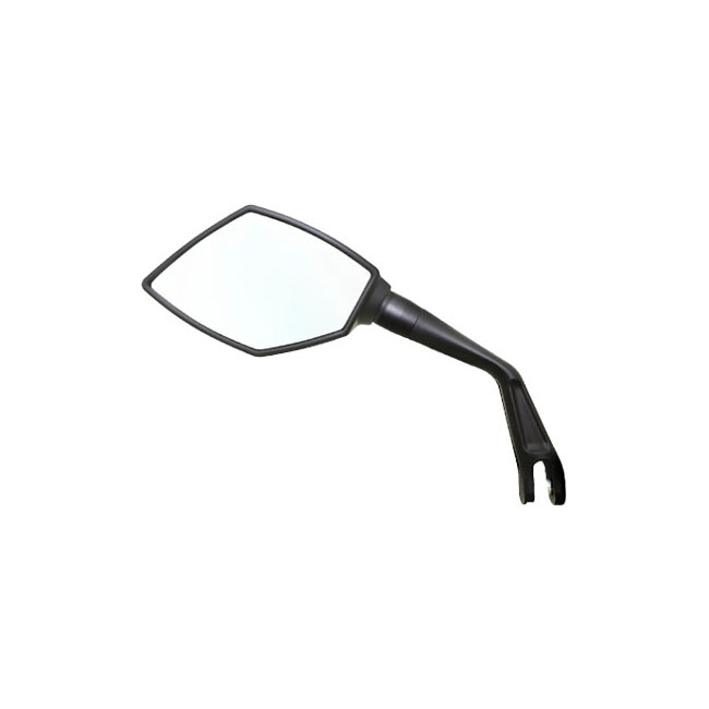 Black. Left side. Universal plastic/metal mirror with 2W LED turn signal and 1.6W LED position/running light. - E-approved 12V 2W LED turn signal and 1.6W LED position light - Mirror lens: Light grey tinted to help prevent glare - Material: Plastic/metal - Threads: M10 x 1.25 x 20mm - Incl. adapter for left-hand / right-hand thread - Dimensions in mm: A = 95mm; B = 150mm; C = 210mm; D = 180mm - Homologation mirror glass: 19E L E4 00 0577 KOSO-M001 - Homologation indicator: 11 E4 50R-00 2795 KOSO-W009. Note: See 942326 for right side.