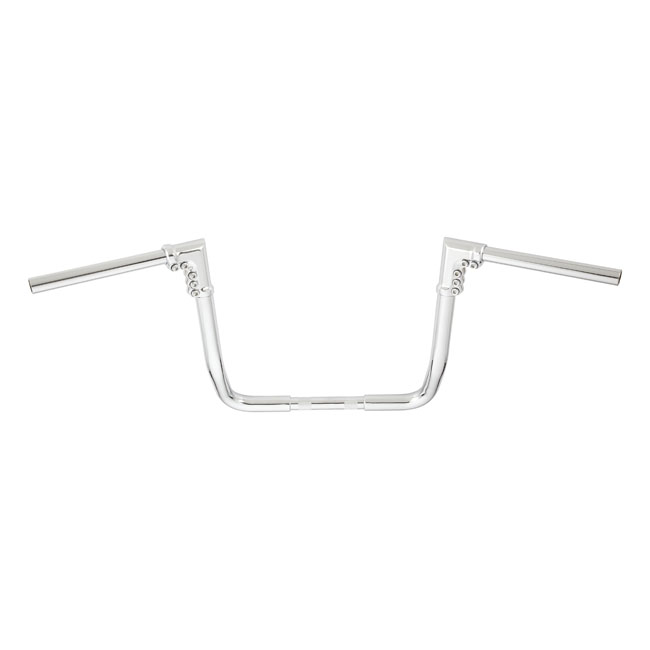 Chrome. 1.25" diameter; 1" at the risers. A design that allows you to fine-tune your bars to your arms instead of the other way around. The finest ride ever is within reach! Approx. dimensions: 13" rise x 15" center width x 36" wide