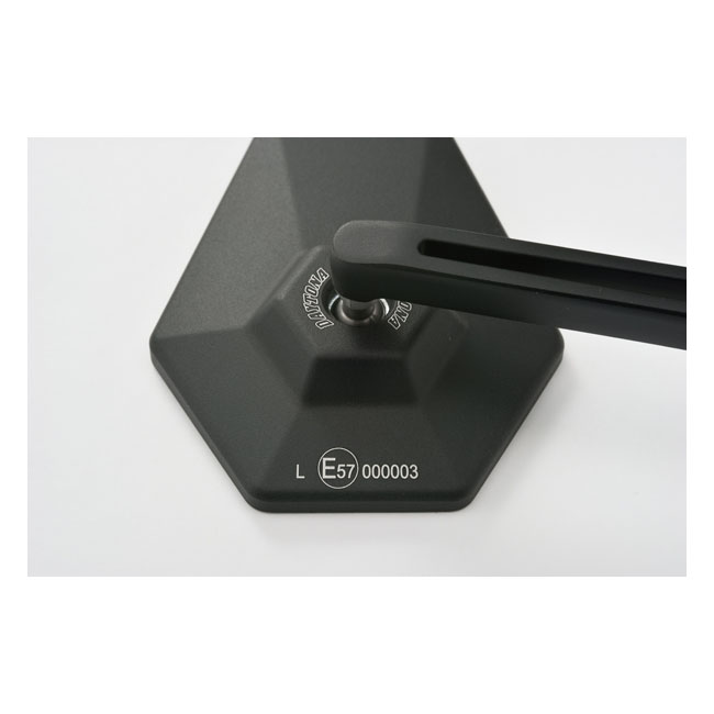 - Mounts to the handlebar mirror mount hole - For left or right side use - Includes M10xP1.25 bolt: 1 x left hand thread (for Yamaha) and 1 x right hand thread - Aluminum mirror head with aluminum stem - EC approved