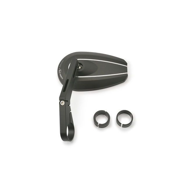 - Used to clamp to the end of the handlebar - With an aluminum mirror head and aluminum stem - For left or right side use - The inner diameter of clamp is 30mm - Includes 2 aluminum clamp inserts to adapt for 22.2mm & 25.4mm diameter handlebars - EC approved