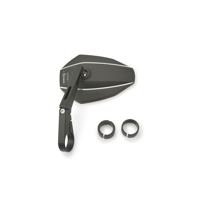 - Used to clamp to the end of the handlebar - With an aluminum mirror head and aluminum stem - For left or right side use - The inner diameter of clamp is 30mm - Includes 2 aluminum clamp inserts to adapt for 22.2mm & 25.4mm diameter handlebars - EC approved