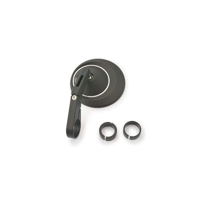 - Used to clamp to the end of the handlebar - With an aluminum mirror head and aluminum stem - For left or right side use - The inner diameter of clamp is 30mm - Includes 2 aluminum clamp inserts to adapt for 22.2mm & 25.4mm diameter handlebars - EC approved