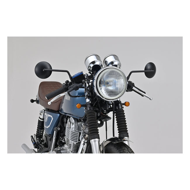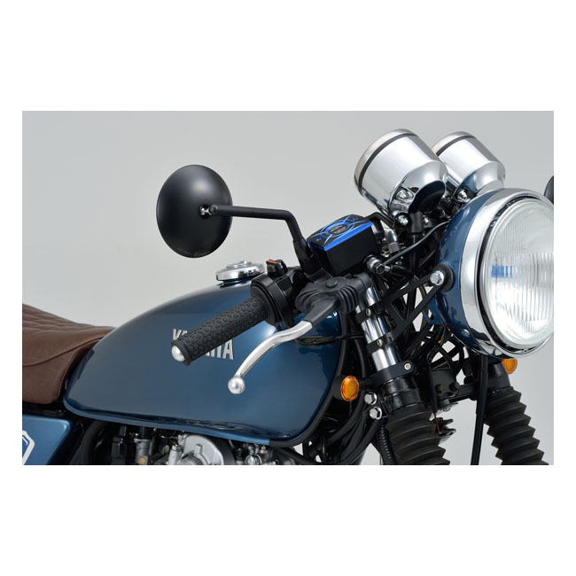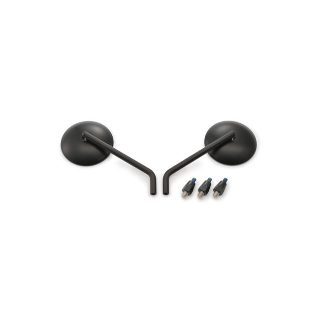 - Mounts to the handlebar mirror mount hole - For left & right side use - Includes M10xP1.25 bolts: (2x right hand thread and 1x left hand thread (for Yamaha) and 2 x Harley adapter - Aluminum mirror heads with steel stems - EC approved