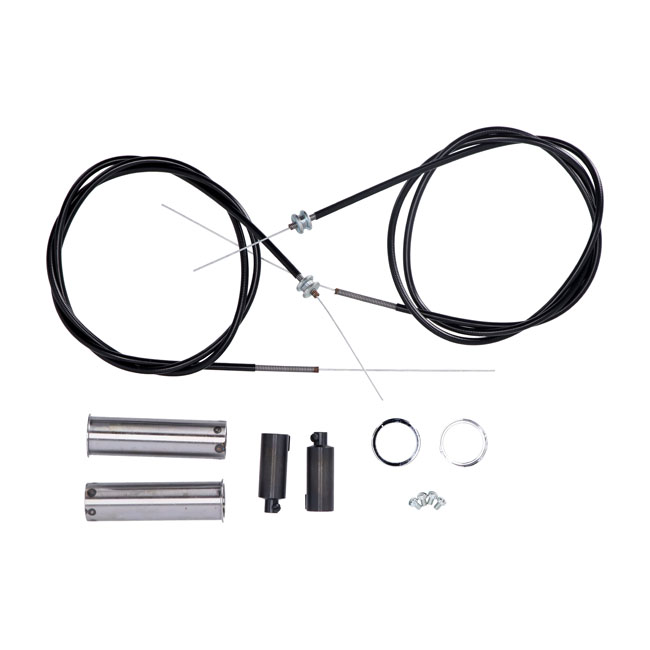 Incl. spirals; rubbers; plungers; vinyl cased cables and screws. With a OEM Linkert carb push-open style throttle action. Note: Non-Linkert aftermarket carbs use a pulling throttle action. Note: Does not include rubber grips.