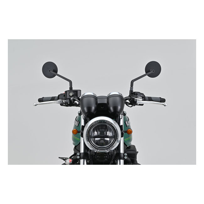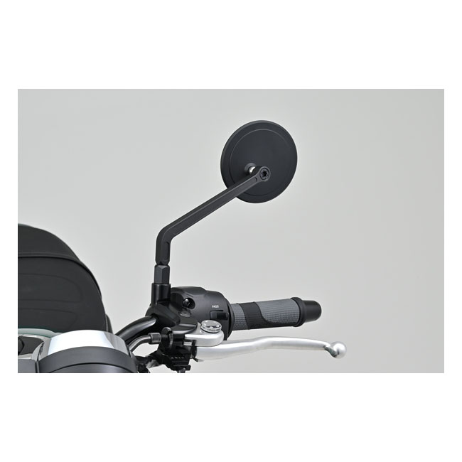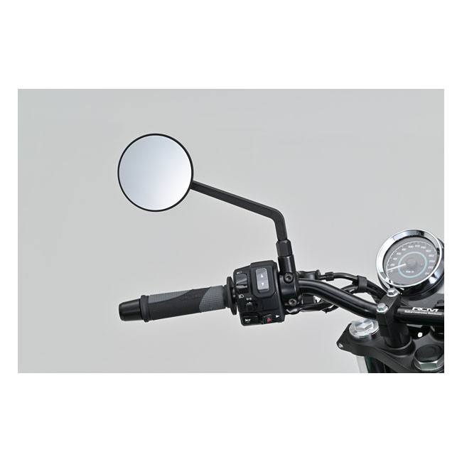 For left side use. With superflat (5mm) thick aluminum mirror head. - Aluminum housing & aluminum stem - Mirror head diameter 100mm - Overall height 181mm - Overall width 193mm - Flat mirror head; thickness around 5mm - Adapter M10×P1.25 included - Sold each - E-marked