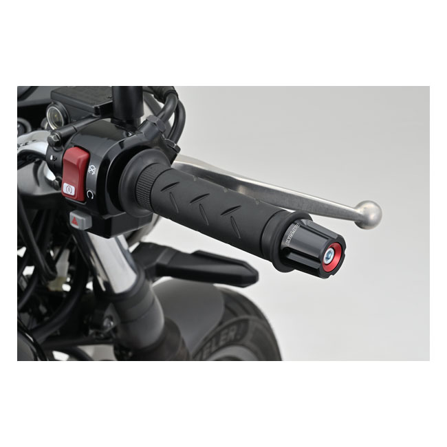 Daytona, Compass handlebar end. Red- Red - Anodized finish - CNC machined aluminum - For 14-19mm I.D. handlebars - Outer diameter 30mm - 2pcs/set