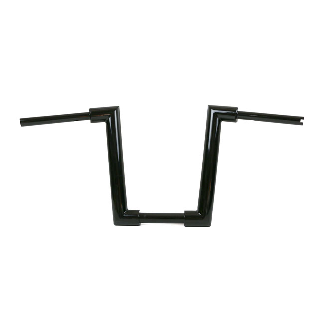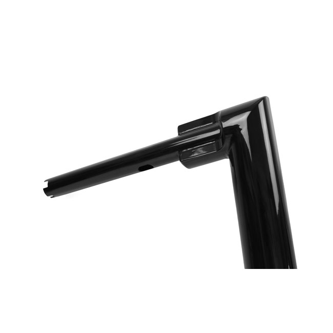 With approval. Gloss black powder coated Super Fat 2" (51mm) diameter handlebar. Must be used with 1-1/4" inside diameter risers; like Kodlin Big Block (979860); Kodlin Spock (928030) or other aftermarket risers with 1-1/4" (32mm) clamping area. - Tall. 38cm high x 82cm wide x 30cm lower width x 13cm pullback - 1-1/4" (32mm) riser area - E-throttle - Okay for heated grips - Slotted for internal wiring - Wiring slot facing down. Note: Check your local MCS dealer or the MCS sales department for exact type of approval and validity on bike model and years on the test report. Note: Original risers of some models are too wide and may not fit correctly. 979860 Kodlin Big Block risers are advised for all H-D with 1-1/4" (32mm) diameter at the risers. When stock risers are a (too) tight fit do not install.