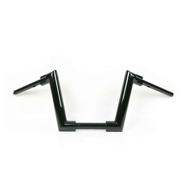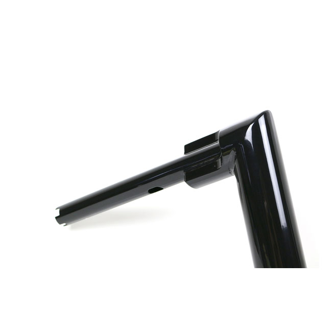 With approval. Gloss black powder coated Super Fat 2" (51mm) diameter handlebar. Must be used with 1-1/4" inside diameter risers; like Kodlin Big Block (979860); Kodlin Spock (928030) or other aftermarket risers with 1-1/4" (32mm) clamping area. - Medium height. 28cm high x 85cm wide x 30cm lower width x 13cm pullback - 1-1/4" (32mm) riser area - E-throttle - Okay for heated grips - Slotted for internal wiring - Wiring slot facing down. Note: Check your local MCS dealer or the MCS sales department for exact type of approval and validity on bike model and years on the test report. Note: Original risers of some models are too wide and may not fit correctly. 979860 Kodlin Big Block risers are advised for all H-D with 1-1/4" (32mm) diameter at the risers. When stock risers are a (too) tight fit do not install.