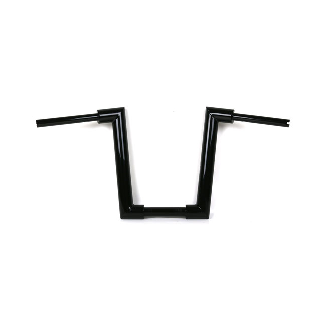 With approval. Gloss black powder coated Super Fat 2" (51mm) diameter steel handlebar. - Tall. 38cm high x 82cm wide x 30cm lower width x 13cm pullback - 1-1/4" (32mm) riser area - E-throttle - Okay for heated grips - Slotted for internal wiring - Wiring slot facing forward. Note: The original 55900050 Road King handlebar cover will require a slight front and upwards machining modification. Note: Check your local MCS dealer or the MCS sales department for exact type of approval and validity on bike model and years on the test report.