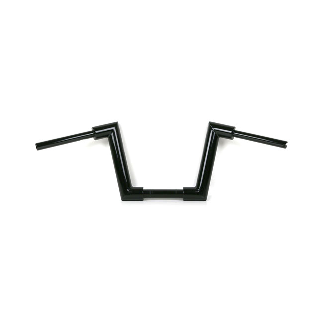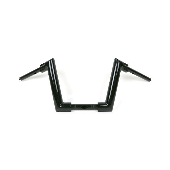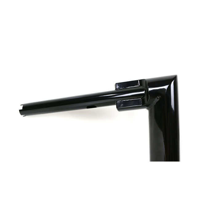 With approval. Gloss black powder coated Super Fat 2" (51mm) diameter steel handlebar. - Medium height. 28cm high x 85cm wide x 30cm lower width x 13cm pullback - 1-1/4" (32mm) riser area - E-throttle - Okay for heated grips - Slotted for internal wiring - Wiring slot facing forward. Note: The original 55900050 Road King handlebar cover will require a slight front and upwards machining modification. Note: Check your local MCS dealer or the MCS sales department for exact type of approval and validity on bike model and years on the test report.