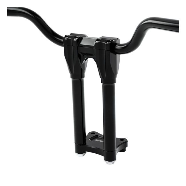 The Street Glide 10" Pro Kit offers everything you need in one easy package to run the Kraus Isolated Riser with Moto bars on your Street Glide. The Street Glide Pro Kit moves the bars back towards the rider to clear the navigation screen and stereo. This setup bolts directly to your stock triple tree. The T-Rex plate and Kraus Isolated Risers offer a total of 2.5" (6.4cm) of pullback and an additional 1" (25.4mm) in height which creates a very comfortable riding position. A great handling bike starts with ergonomics and body position. No matter how fast your bike is and how well it brakes; you don't have real performance if you don't have comfortable control over your machine. Kit includes: - 10" Kraus Straight Isolated Risers. Black Anodized aluminum - T-Rex Pull Back Plate. Black Anodized - 1-1/8" (28.6mm) FM Fly Moto Style Handlebar. Black steel - Pro-line Perch Half Clamps. Black anodized aluminum - Hand position height from the top of the stock triple tree with 10" risers with Fly Bars = 13.5" (34.3cm) total Note: When running the T-Rex pullback plate you can not use your stock Key Switch/Steering Lock so you will need to relocate the switch. Check with your local shop or dealership for options. Some bikes can be reprogrammed to not need the key switch at all.