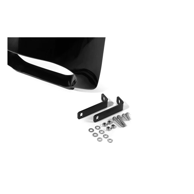 Bolt-on installation ease and comes with a stainless headlamp bracket. Made of hand-laid unpainted black gel coated fiberglass that is very stiff; strong; straight and light. Ready for primer and paint with minimal preparation. Compatible with the original turn signals. Includes hardware and installation instructions. Note: Fitment checks are always advised before painting and final assembly.Note: With approval. Check your local MCS dealer or the MCS sales department for exact type of approval and validity on bike model and years on the test report.
