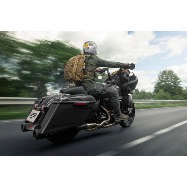 With a massive 2" outside diameter. For models with 1-1/4" handlebar clamp diameter and 1" handlebar grip diameter. Gives the bike an aggressive; functional and modern look. With five laser-cut holes for internal wiring to offer a clean installation. Just thread the wires inside the bar and you're ready. Complete with special for easy mounting of OEM master cylinder. half clamp Integrates seamlessly with 1-1/4" risers and e-throttle (throttle by wire) setup. With a gloss black powder-coated finish for lasting good looks. - 2" (50mm) outside diameter - Stock 1-1/4" (32mm) handlebar clamp diameter - Stock 1" (25.4mm) mm grip diameter - W36 7/8"; H14"; PB 4.75- E-throttle compatible - Heated grips compatible - For hydraulic operated clutch - 5 laser cut wiring holes - Complete with half clamp for master cylinder - Gloss black powder coated steel. Note: With approval. Check your local MCS dealer or the MCS sales department for exact type of approval and validity on bike model and years on the test report.
