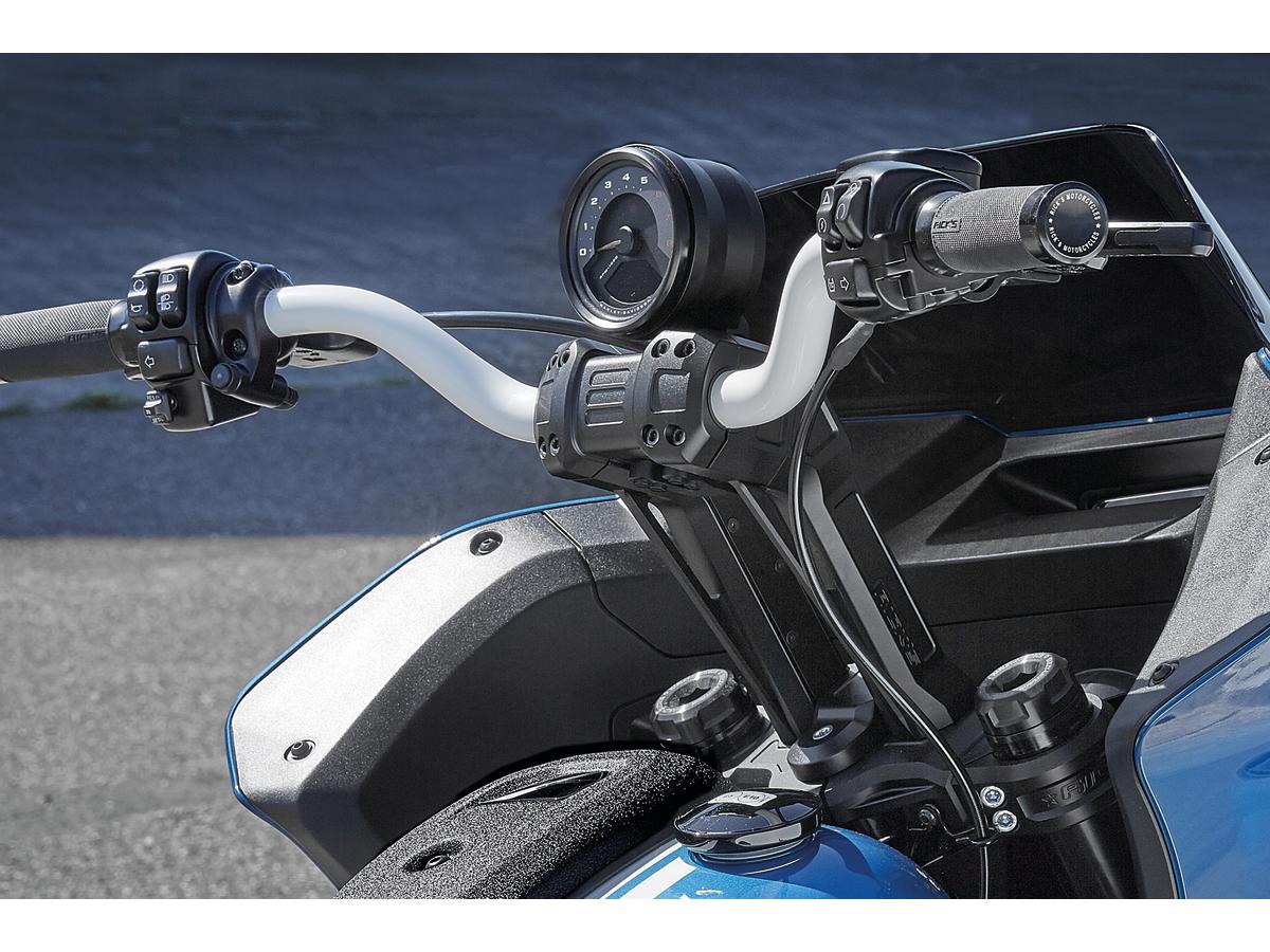 Club Style Pullback Riser Kit for Top Mount Round Speedometer 8,5" Height, 1 1/4" Clamp Diameter Black Anodized- With Approval- Clamp ø: 1 1/4"- Height: 8,5"