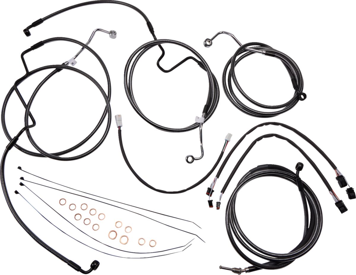 - Kit enthält: Magnum Viking Warrior Lenker, Gas- und Leerlaufzüge oder Throttle-By-Wire-Verlängerungen, Kupplungszug oder Hydraulikleitung, Bremsleitungen, Kupferdichtringe, Befestigungsmaterial sowie alle erforderlichen Schalter- oder Blinker-Verlängerungen.