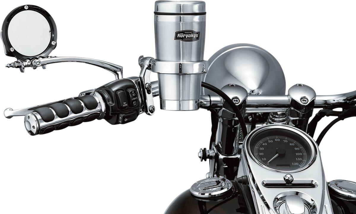 Universal-Getränkehalter mit Becher- Lassen sich am Lenker oder an der Kupplungs-/Bremsarmatur befestigen; passend für mittelgroße Tassen, Dosen, Flaschen oder Becher.