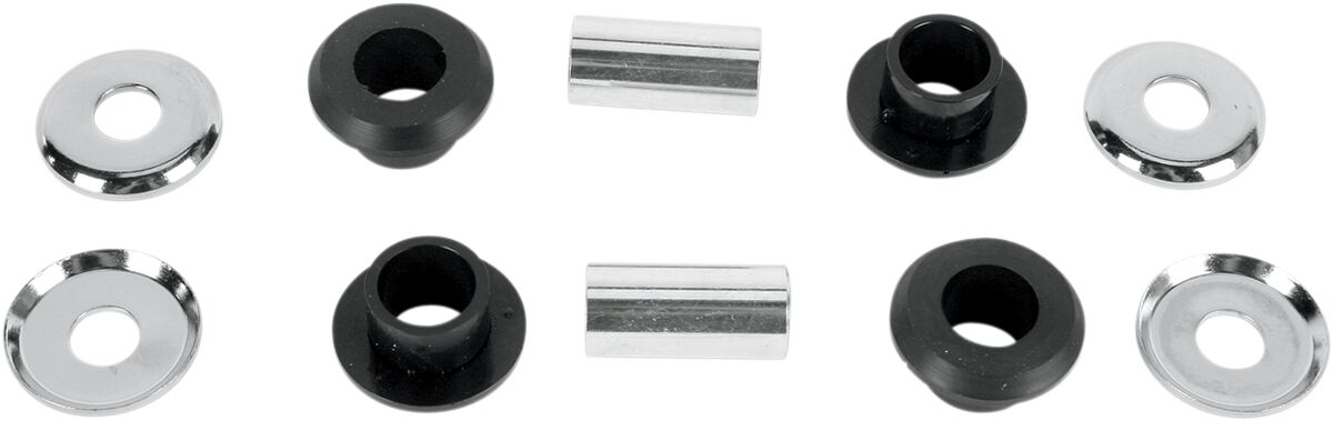 - Jedes Kit enthält Polyurethanbuchsen, innere Stahlhülsen und robuste Chrombeilagscheiben.