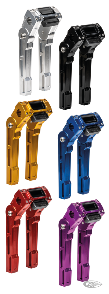 Riser aus Billet-Alu, 8" (20cm) oder 10" (25cm) hoch, mit verstellbarem Oberteil und einteiliger oberer Klemmung zur Verwendung mit 1" Lenkern. Wird komplett mit M12-1,5x70mm Riser-Schrauben geliefert. Die obere Klemme ist ausgelegt um das OEM-Digital Kombiinstrument zu befestigen.