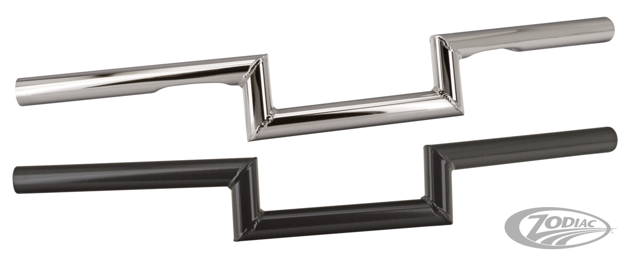 Diese hochwertigen Lenker werden in Holland aus dickwandigem 1" (25,4mm) Stahlrohr hergestellt. Erhältlich ww. mit Einkerbungen um Platz für die Lenkerverkabelung der Harley-Davidson zu bieten oder ohne diese Einkerbungen. Alle Genuine Zodiac Parts GZP Lenker sind für Gasgriffe mit Seilzügen ausgelegt, können aber einfach für Throttle-By-Wire Gasgriffe modifiziert werden.