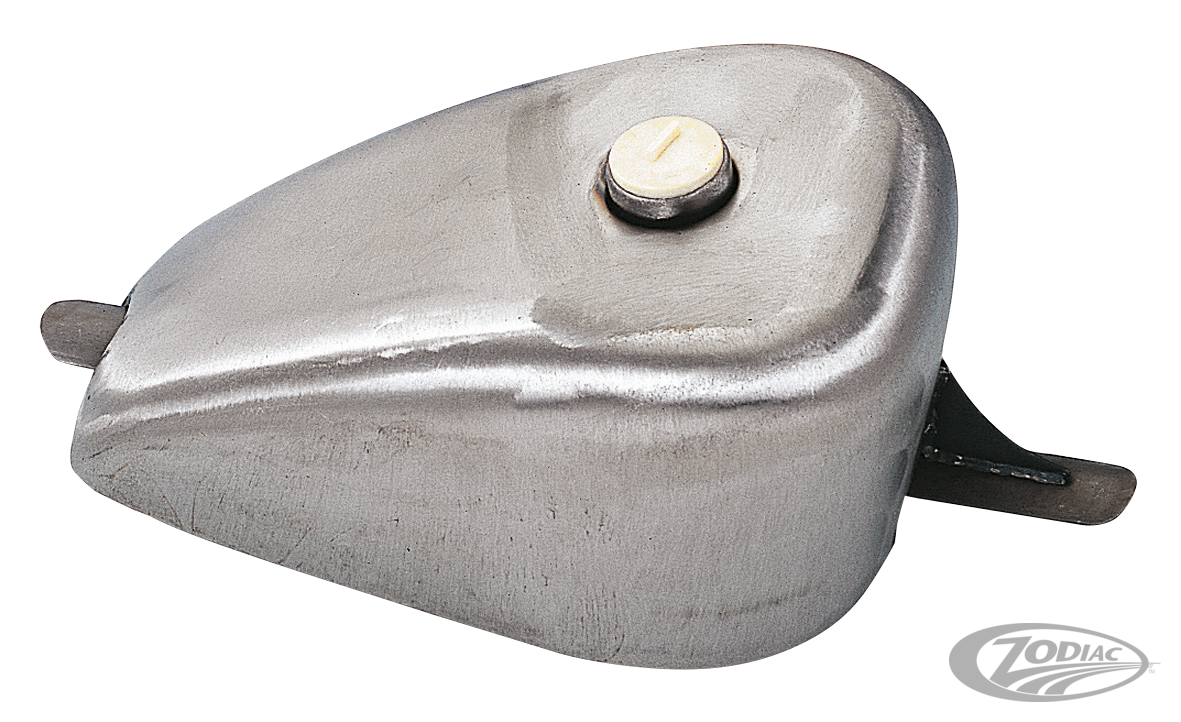 Our gas tanks are made from thick gauge quality steel, all welds are quality checked, they feature two sizes of petcock connecting thread to take early style petcocks with 3/8" NPT or 1/2" NPT Custom petcocks. Tanks will take our universal or deluxe gas cap (see gas cap section) and have universal mount for many Custom applications.