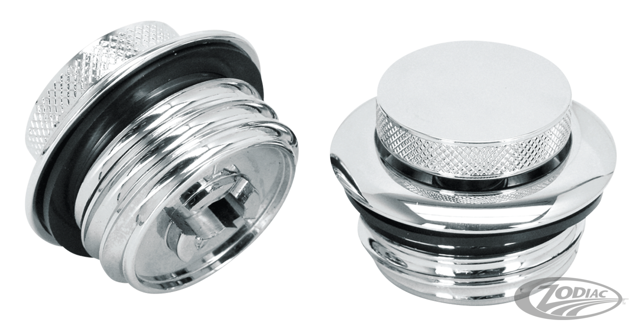Now you can have that real Smooth Top look, as seen by the worlds leading Custom Bike Builders without changing your gas tank. These "Pop-Up" gas caps come complete with threaded inserts that replace the stock gas cap and allow for the use of these chrome plated Pop-Up's. Just remove your stock gas caps and install the inserts in seconds! "Pop-up" gas caps are easy to open or close, just push and twist the cap and the cap will pop up and is ready to unscrew. Fits all screw cap type stock OEM 1982-2017 and most aftermarket gas tanks. Caps are available in vented and non-vented and are sold each.