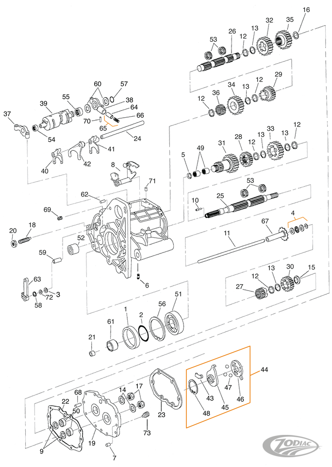 Gaskets, seals, and O-rings for 5 Speed transmissions as used in late 1979-2006 FLH and FLT series, 1986-2006 Softail, 1982-1994 FXR and 1991-2005 Dyna. Complete sets include all the gaskets, seals and O-rings needed for a complete rebuild. Transmission oil seal kits include all the necessary O-rings, oil seals and, where applicable, sprocket nut lock washer, but no gaskets. Note: Most aftermarket 6-speed transmissions and 6-speed conversion kits use stock style 5 Speed gaskets, O-rings and seals. Note: Sold to dealers in pack quantities as listed.