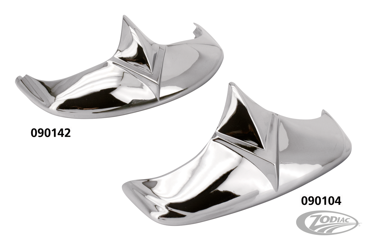 Exact reproduction of the early FL front and rear fender tips and stainless steel trim pieces. Tips are cast like the OEM equipment and have a perfect chrome finish, lower edge trim are pressed from stainless steel to make these tips and trims an exact duplicate in both form and material. OEM replacement on FL models 1959 thru 1966 but can be fitted to all FL style front fenders 1949 thru 1986 and all FL style rear fenders 1959 thru 1986.