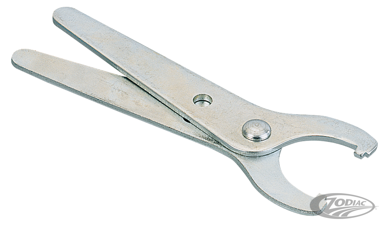 Works on Harley V-Twins to set more or less, spring compression on the rear shocks. Can be used on models 1958 thru 1984 and Sportster models 1958 thru 1974. Zinc plated finish.