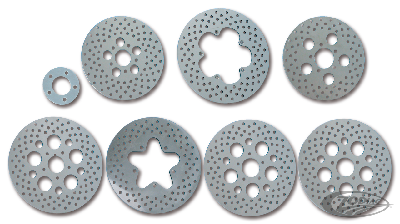 Made of chromium alloy Stainless Steel and precision ground for trueness, Surface induction hardened with a 12- 14% chrome contents for superior wear characteristics on full standard A1S1 #420 Stainless Steel plate. Rotors are compatible with all types of disc brake pads including sintered metal and are mirror polished. Drilled rotors provide better braking in wet weather, dissipate heat more efficiently, and reduce unsprung weight.