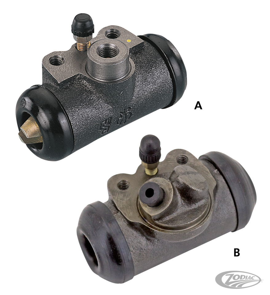Complete replacement wheel cylinders provide positive brake operation and leak-free performance. Precision machined cast steel housing complete with heavy-duty cups and seals.